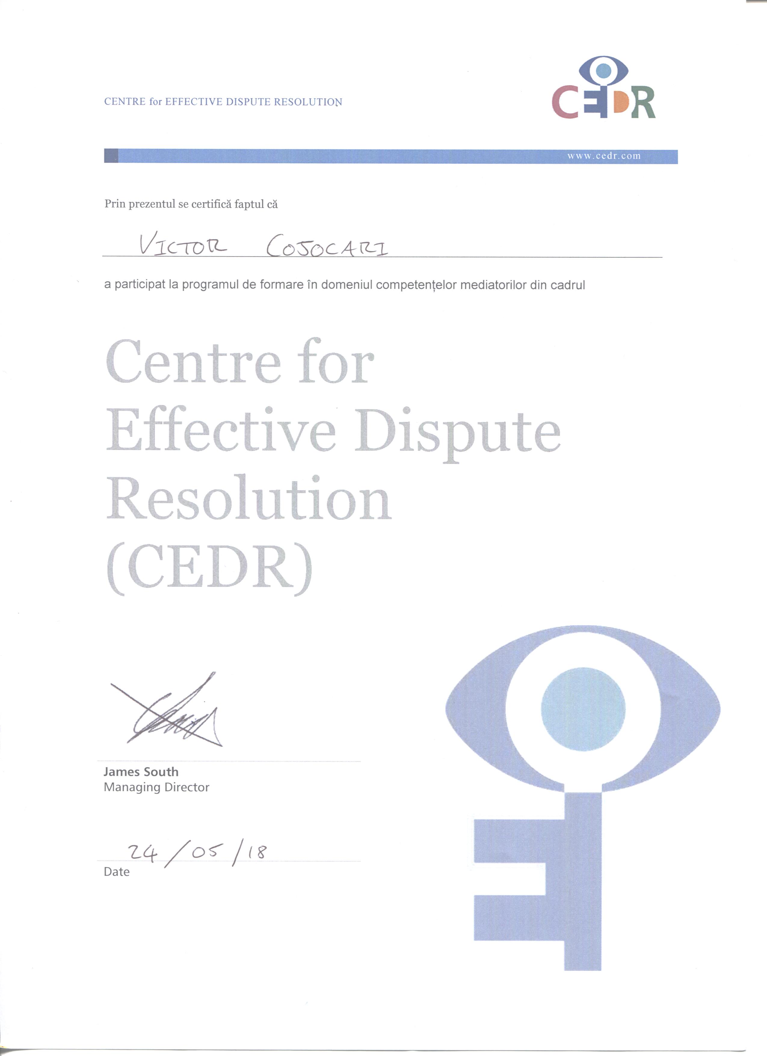 | 10 | Curs instruire in domeniul medierii litigiilor comerciale organizat de CEDR (Marea Britanie), Chisinau, 6 zile, 2018 | ![]() |
