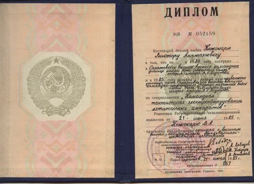 superioare Scoala superioara militara de comandanti ingineri a trupelor de rachete din or. Saratov, Rusia, 1980-1985, |